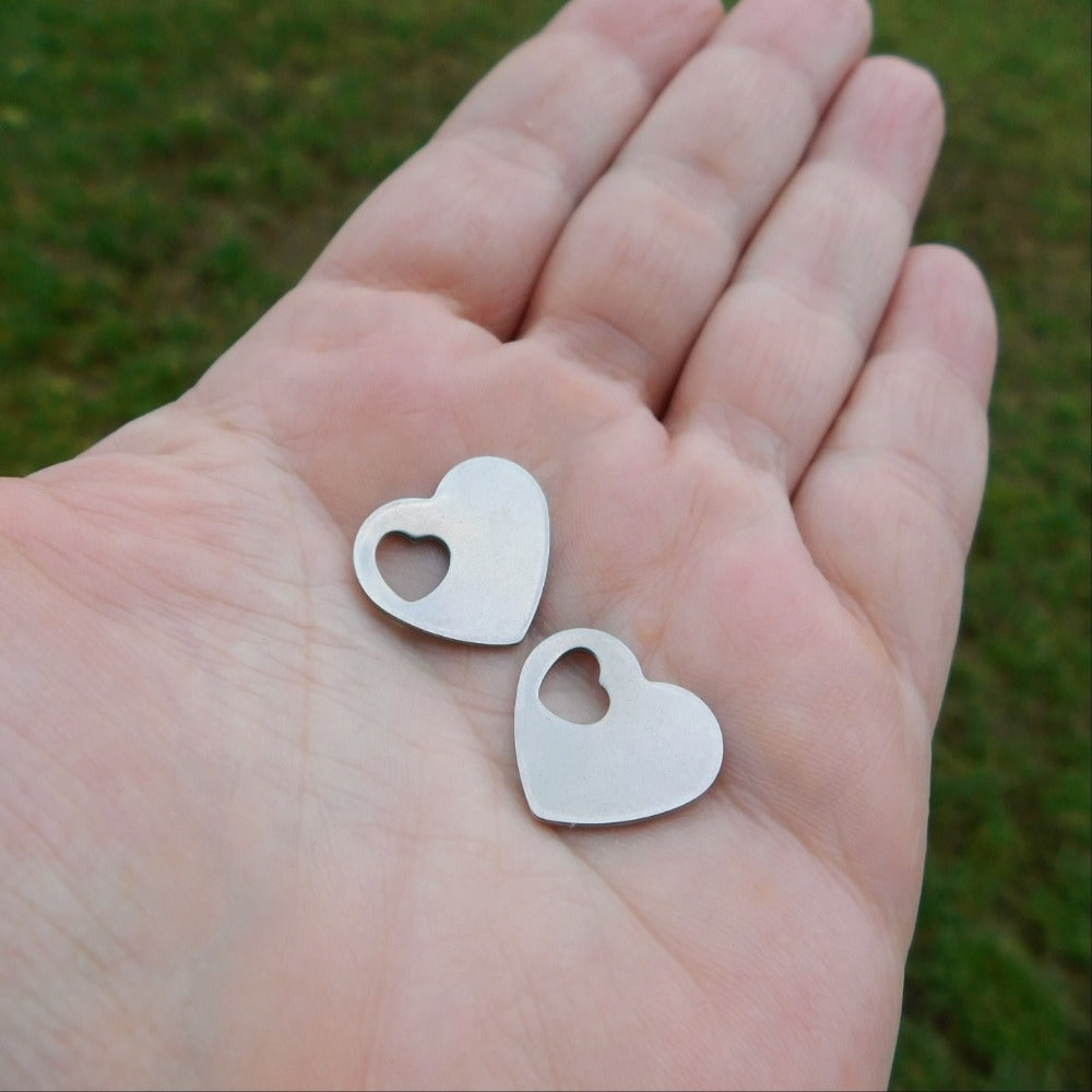 Ett hjärta i rostfritt stål med ett litet utstansat hjärta inuti.